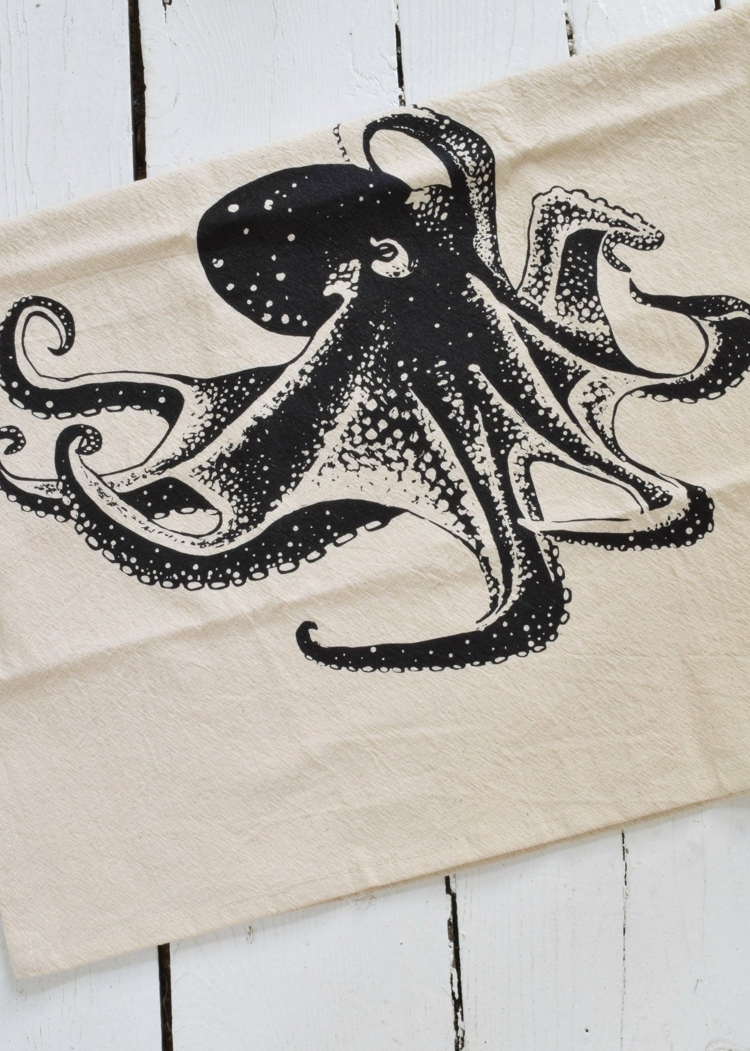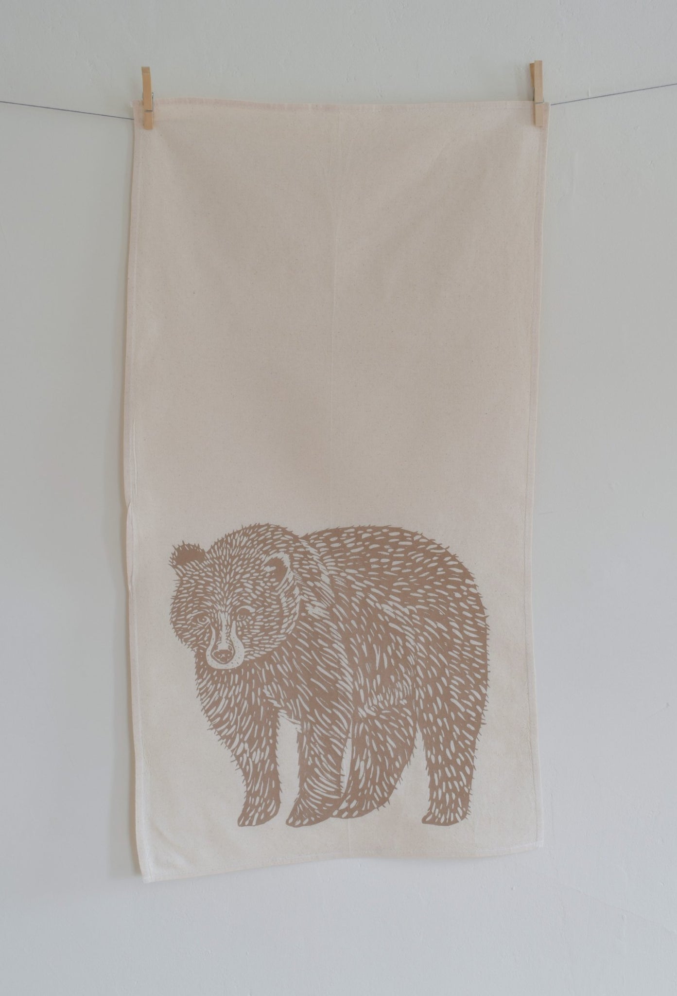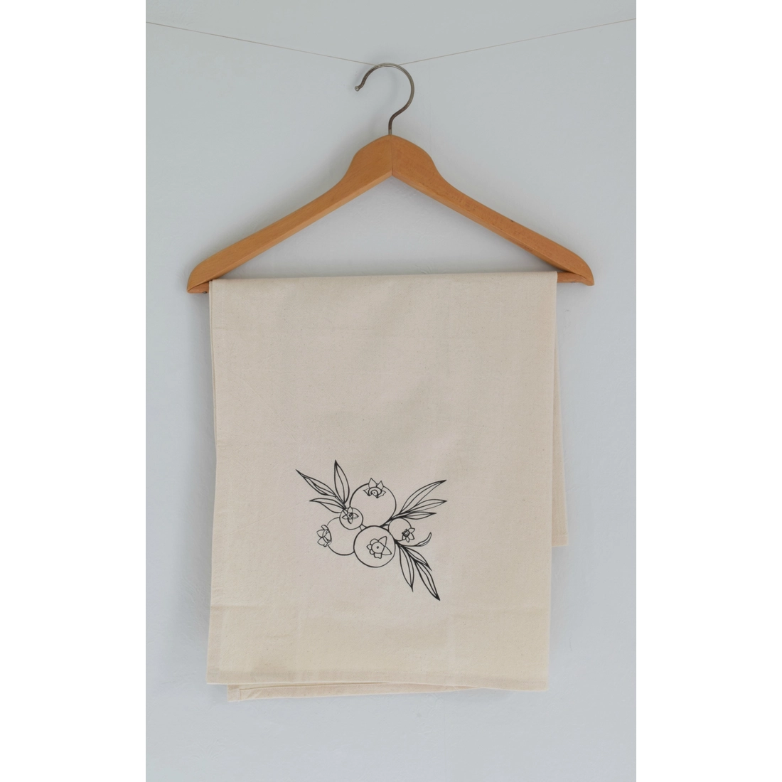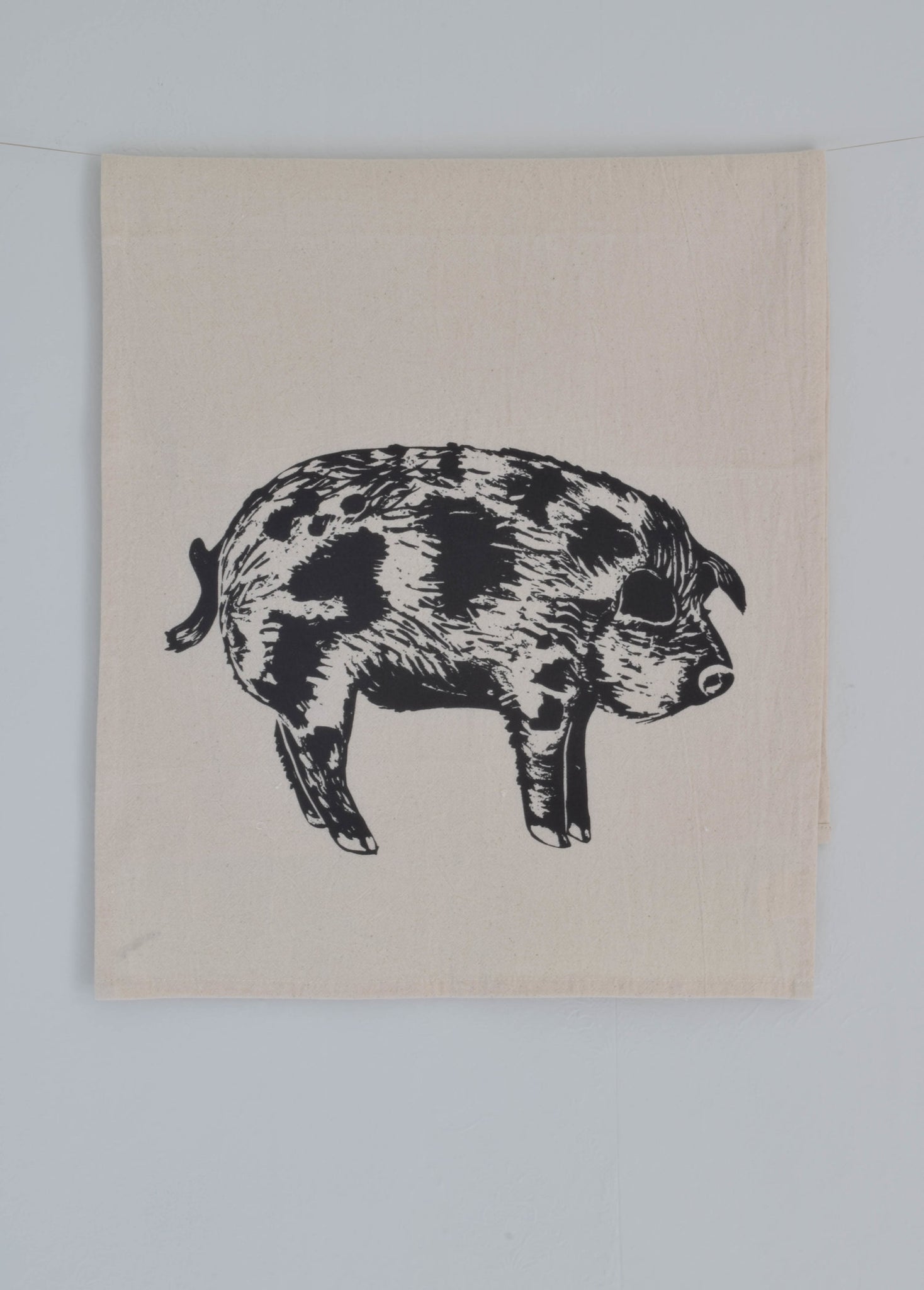 One large natural cotton flour sack towel (29" X 30") or (17" x 38"), screen printed with original Hearth and Harrow drawing. Towels are hand printed in small batches on organic cotton using environmentally friendly water-based ink.